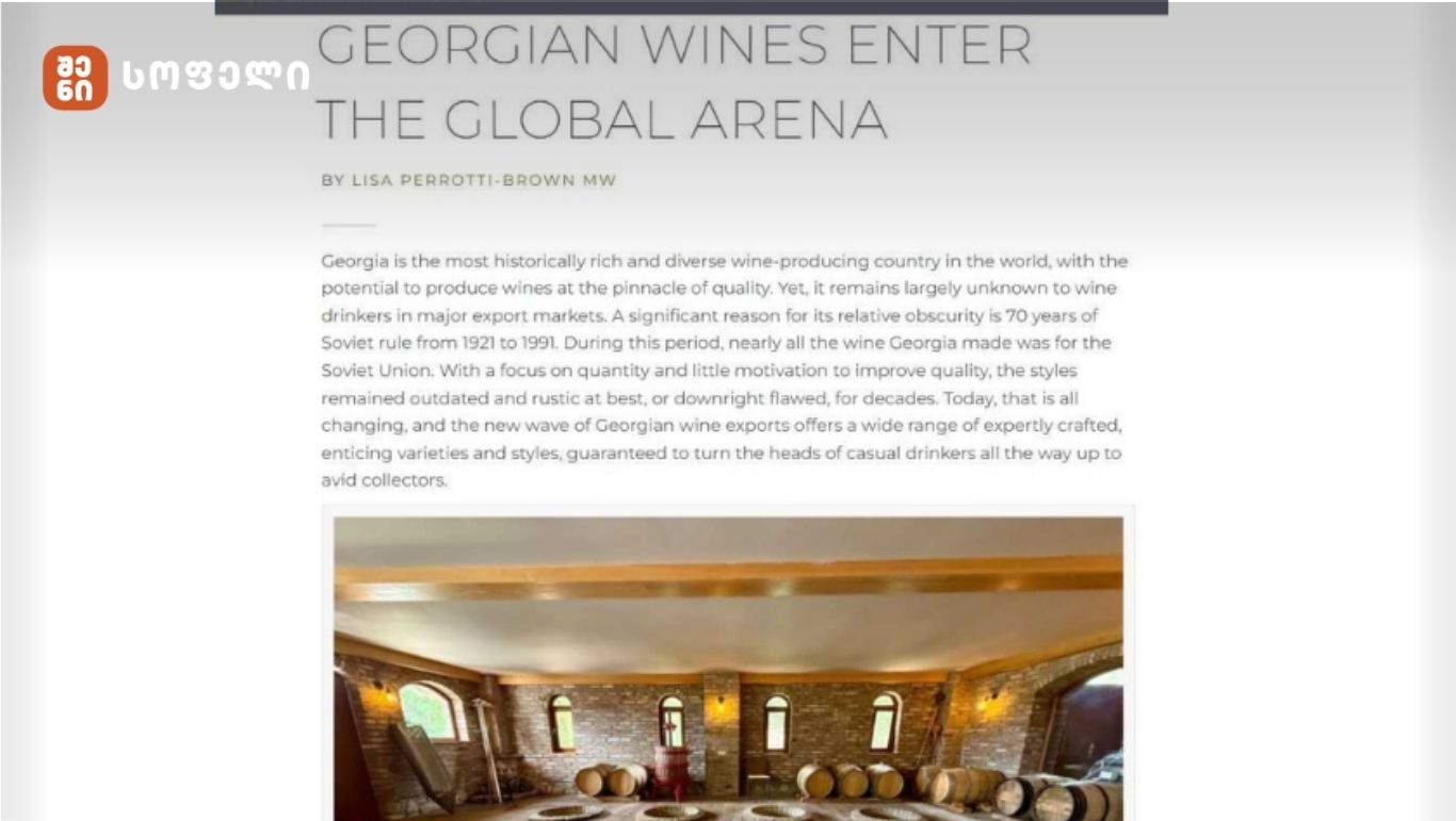„ქართული ღვინოები გლობალურ ასპარეზზე გამოდიან“ სტატია – ამ სათაურით ამერიკულ გამომცემლობაში „The Wine Palate“ გამოქვეყნდა. სტატიის ავტორი, ამერიკელი ღვინის მაგისტრი ლისა პეროტი-ბრაუნი (Lisa Perrotti-Brown), ღვინის ეროვნული სააგენტოსა და ამერიკული კომპანიის „Big Sky Ranch Inc” თანამშრომლობის ფარგლებში, საქართველოს ივლისში ეწვია.